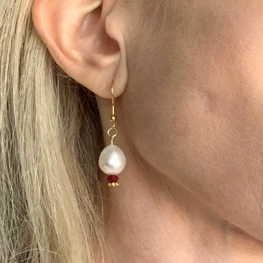 AAA Pearl and Ruby Drop Earrings with gold fill accents
