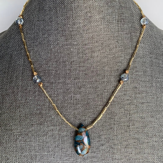 Crystal/ Gold / Goldblue Quartz Tear Drop 15x30mm Pendant Necklace